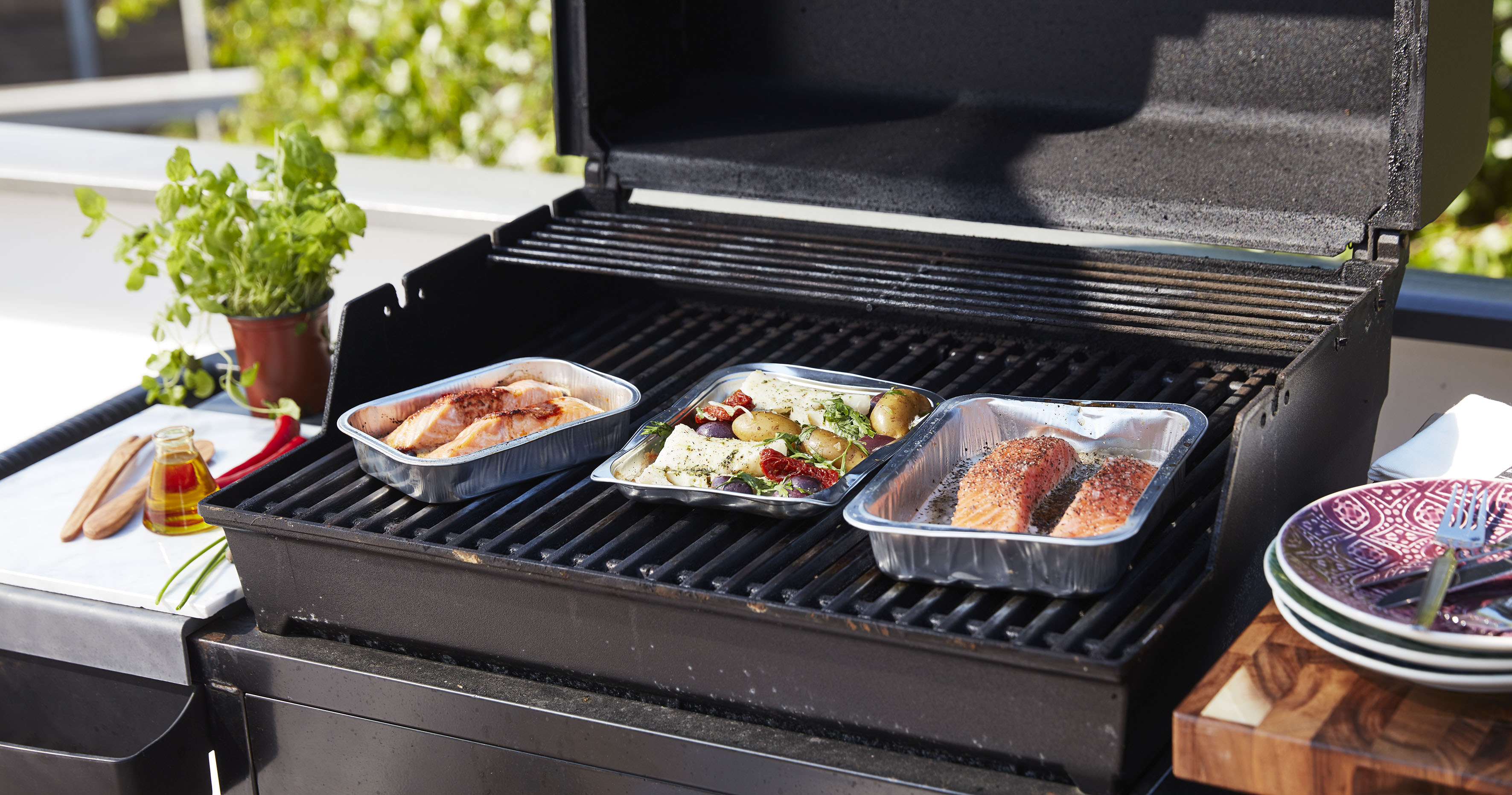 Lax och torsk på grillen